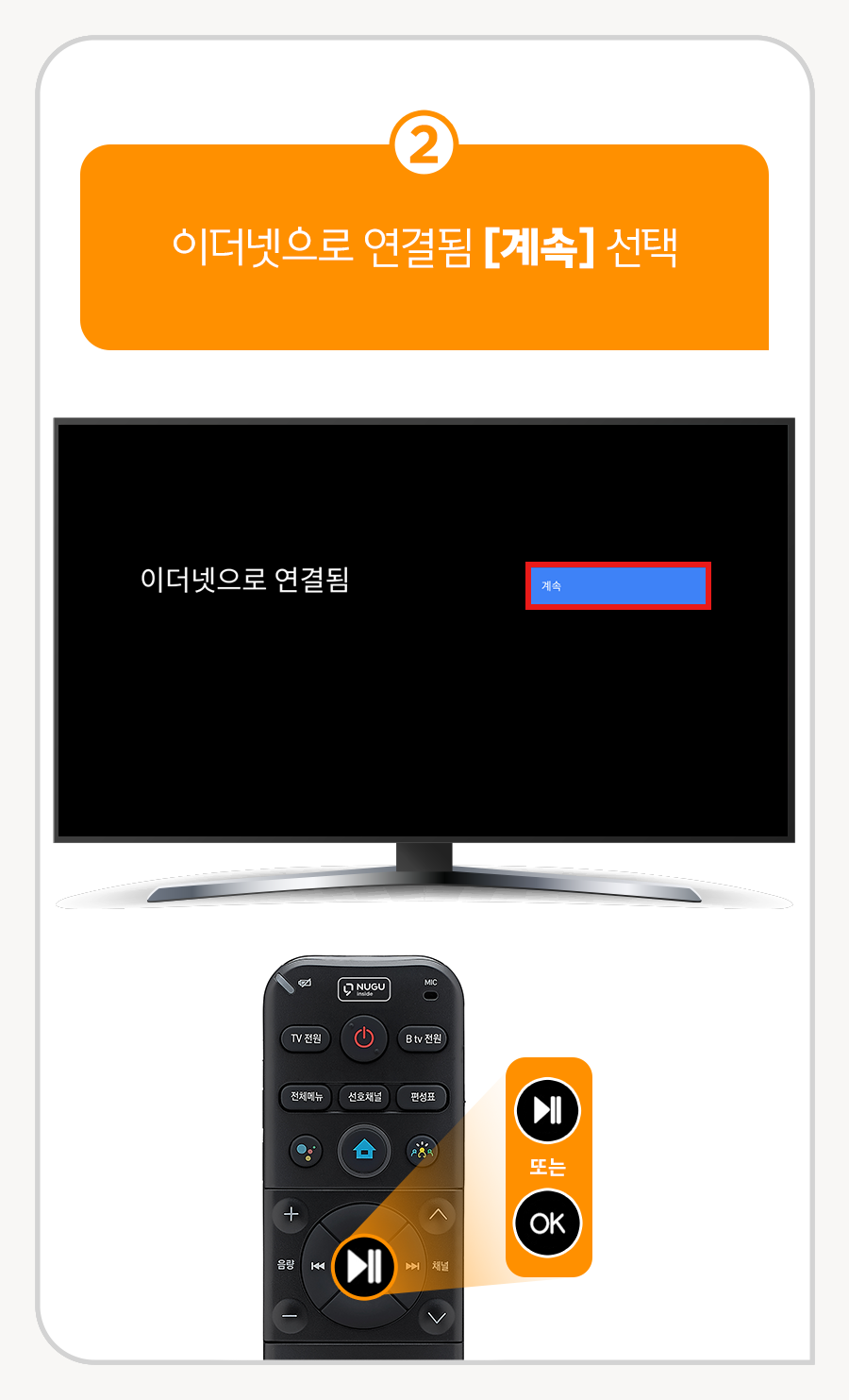 8. 리모컨의 (OK) 또는 (▶||) 버튼을 선택