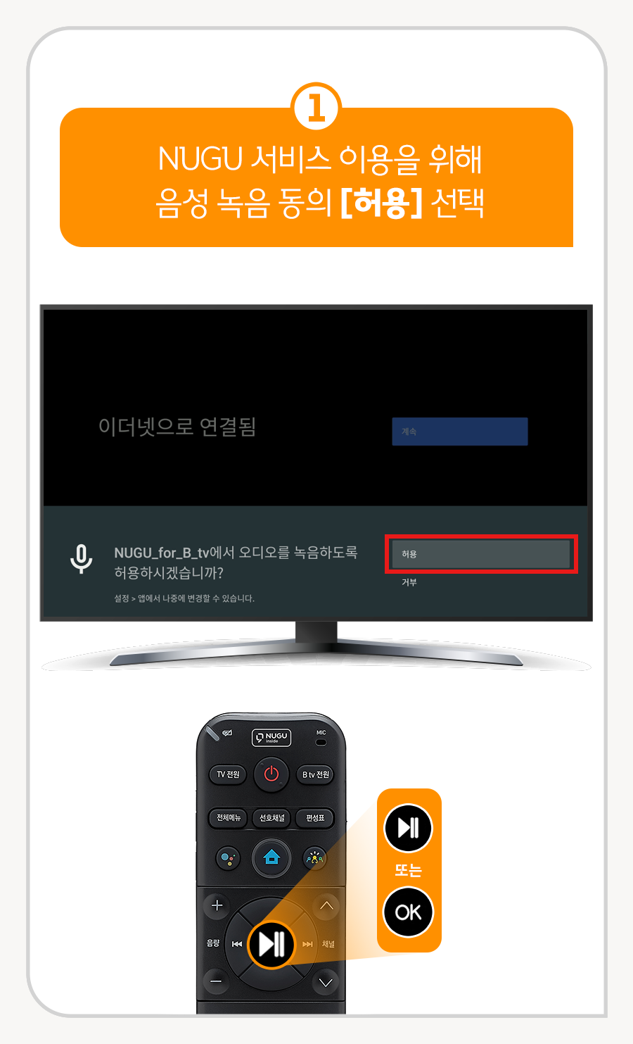 1. NUGU 서비스 이용을 위해 음성 녹음 동의 [허용] 선택