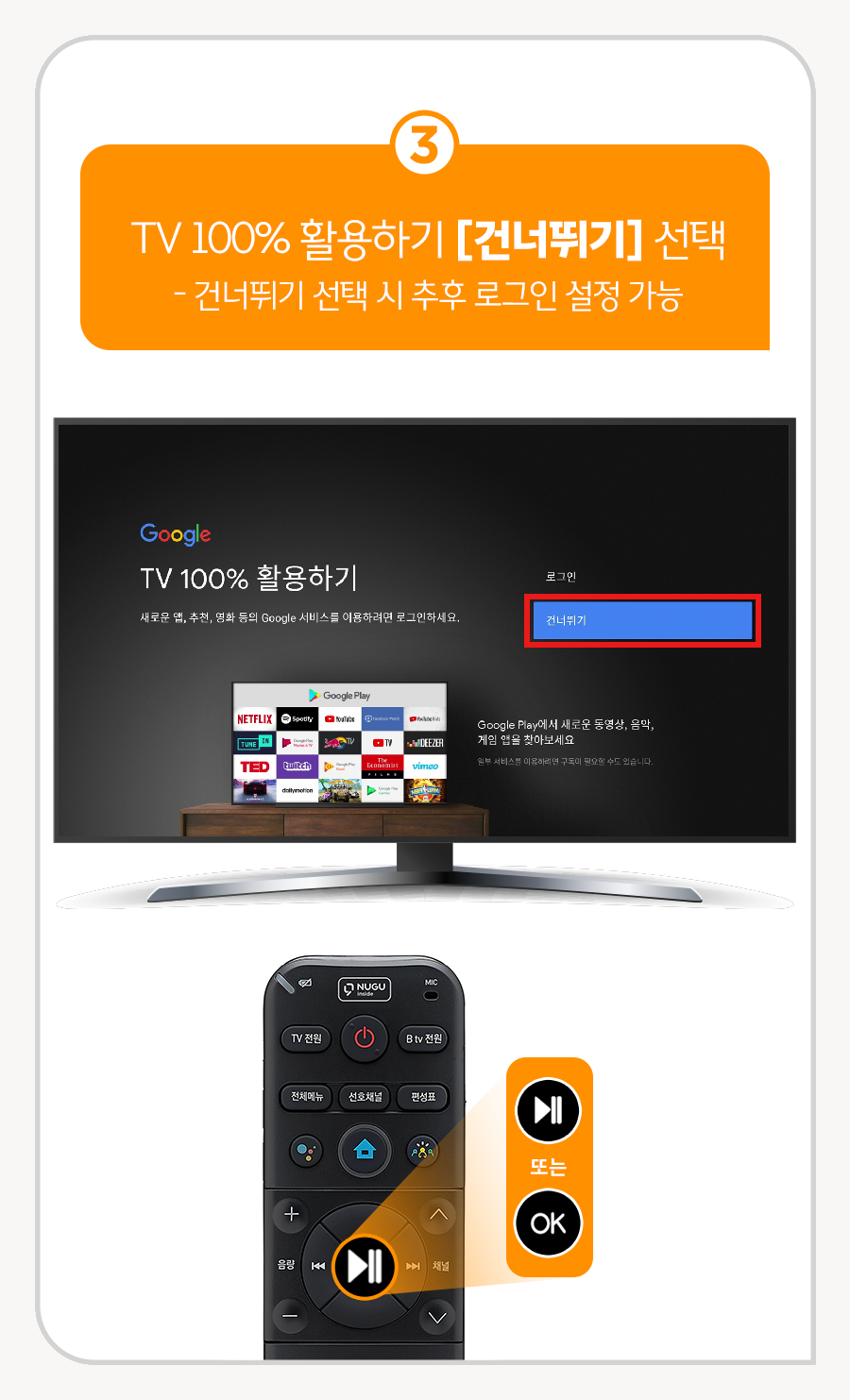 3. TV 100% 활용하기 [건너뛰기] 선택