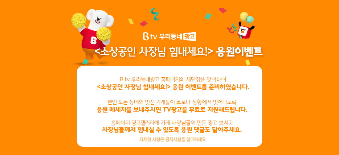 ‘B tv 우리동네광고’는 항상 소상공인 사장님들을 응원합니다!