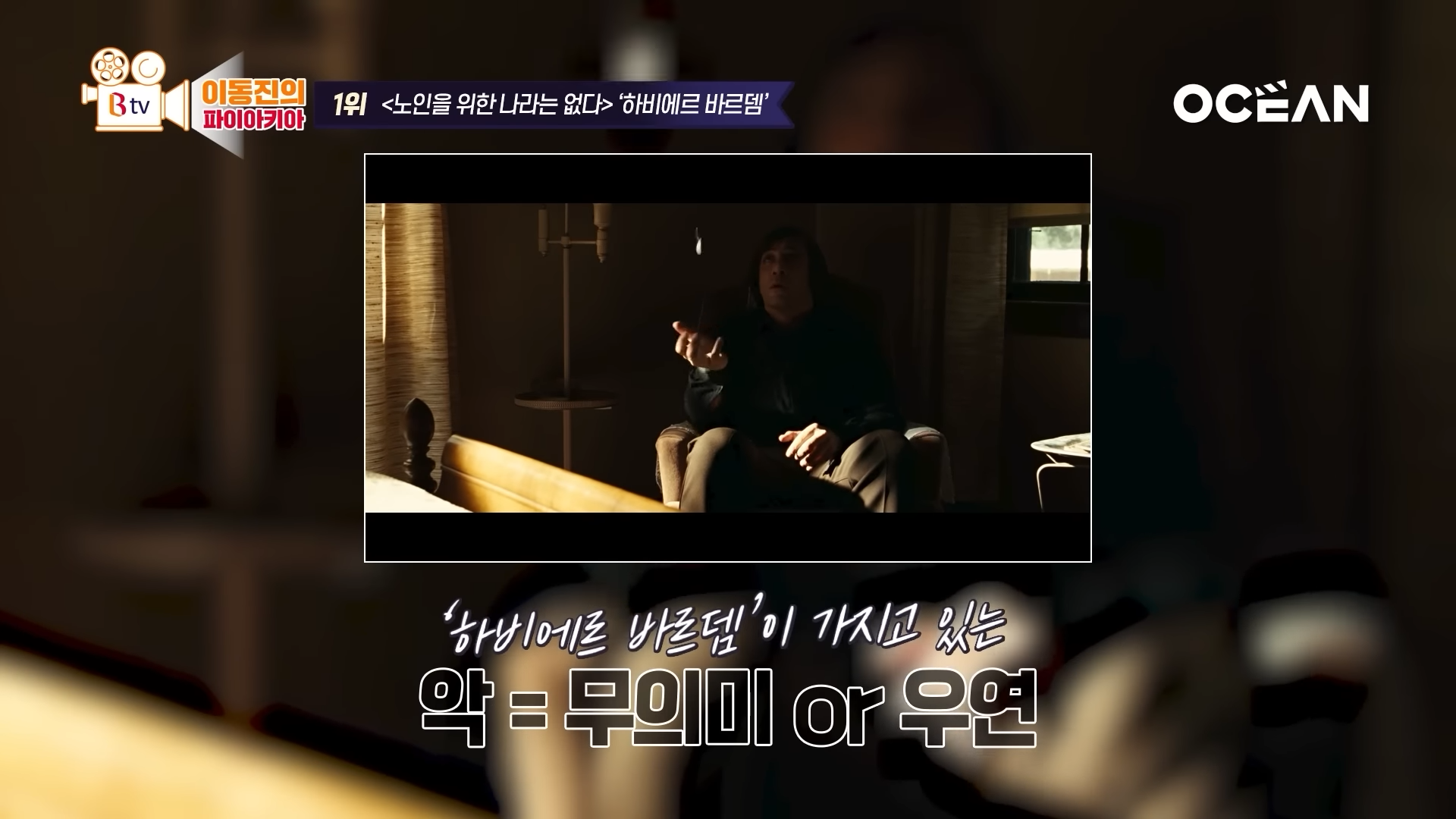 ‘하비에르 바르뎀’은 이와 반대로 가장 낮은 온도의 탁월한 악역 연기를 보여주었기에 1위로 선정했다고 이동진 평론가는 말했습니다.