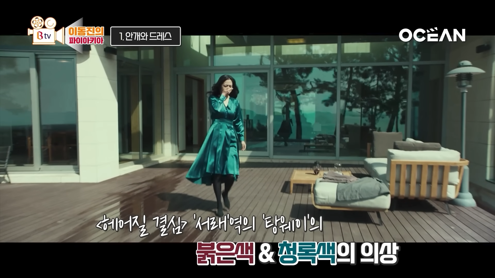 극중 서래는 붉은색과 청록색의 의상을 입고 있는데, 특히 평론가는 청록색 드레스에 집중하죠.