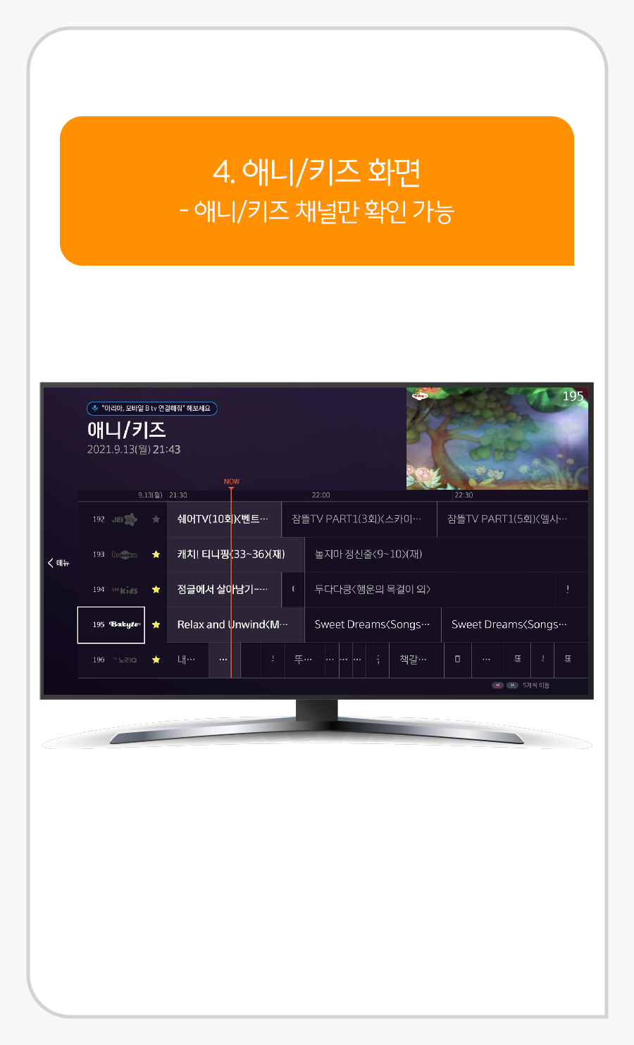 애니/키즈 채널만 확인 가능