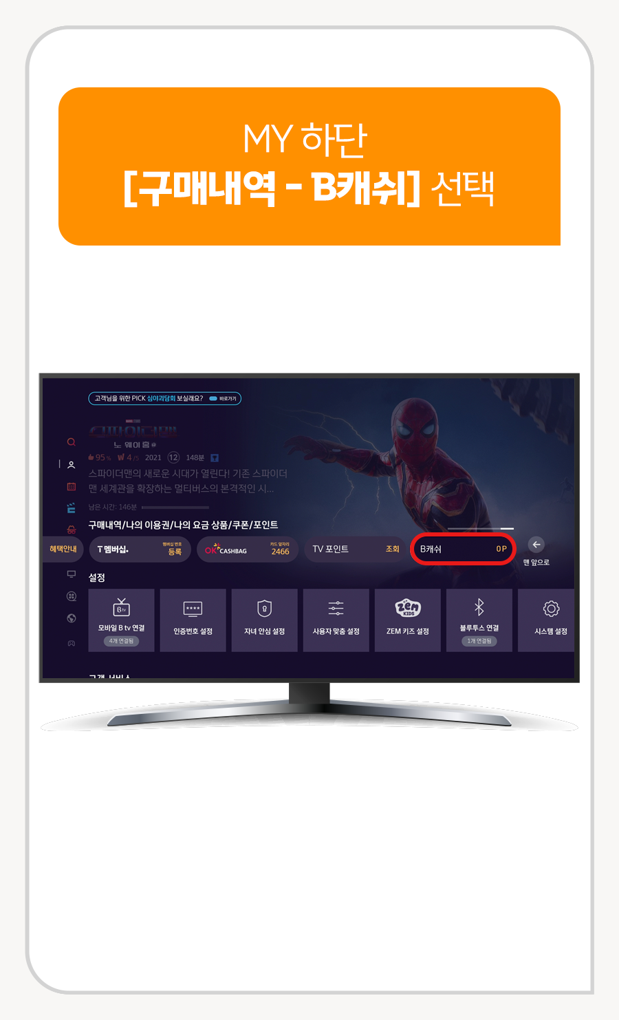 B tv 콘텐츠를 구매할 때 B캐쉬를 사용할 수 있어요!