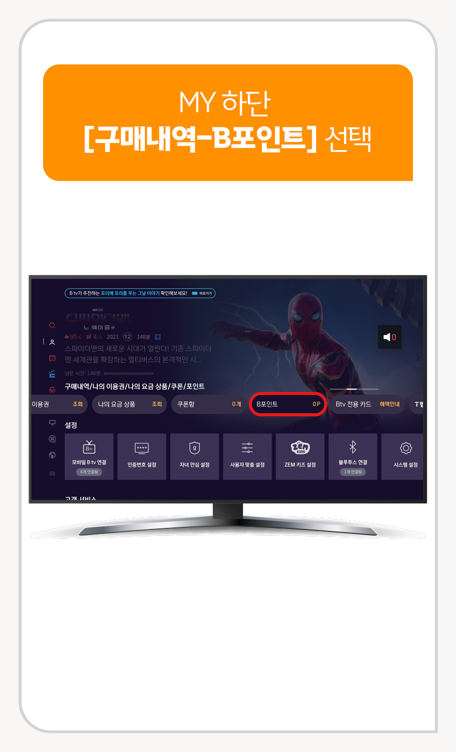 ① 보유 포인트 : B tv 콘텐츠를 구매할 때 사용 가능