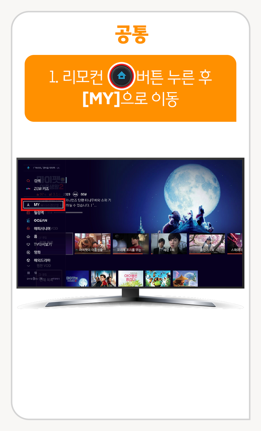 공통1) 리모컨 홈 버튼 누른 후 [MY]로 이동