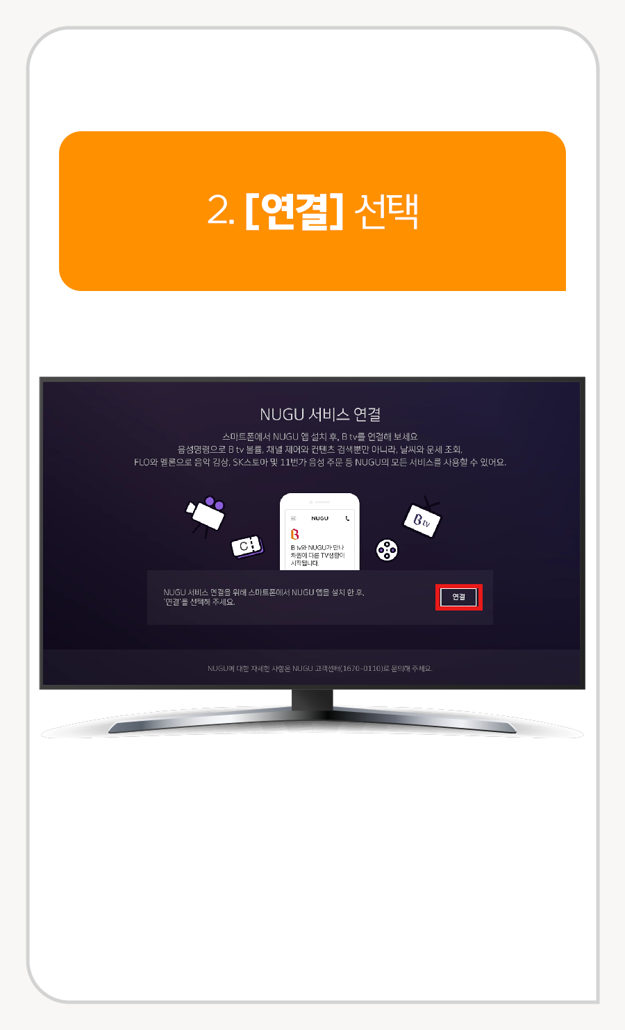 1. B tv 홈 > MY > 설정 > 설정 전체보기 > [NUGU 서비스 연결] 선택