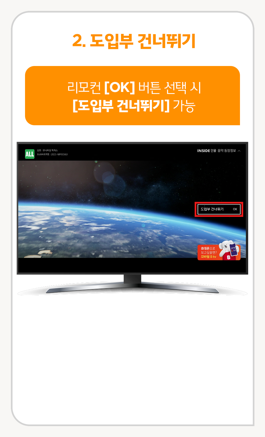 리모컨 [OK] 버튼 선택 시 [도입부 건너뛰기] 가능