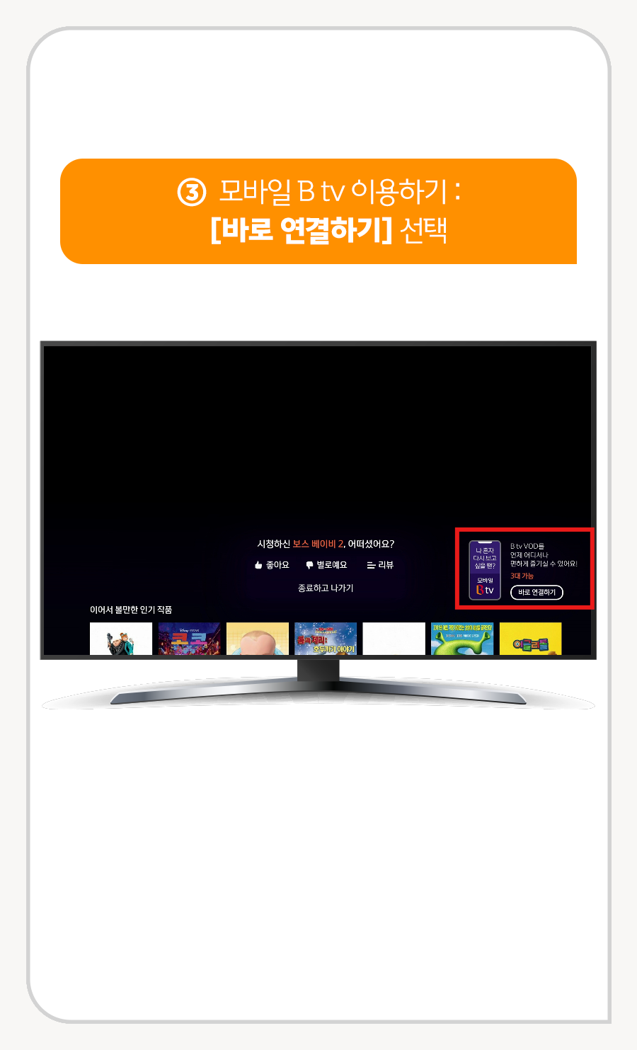 ③ 모바일 B tv 이용하기 : [바로 연결하기] 선택