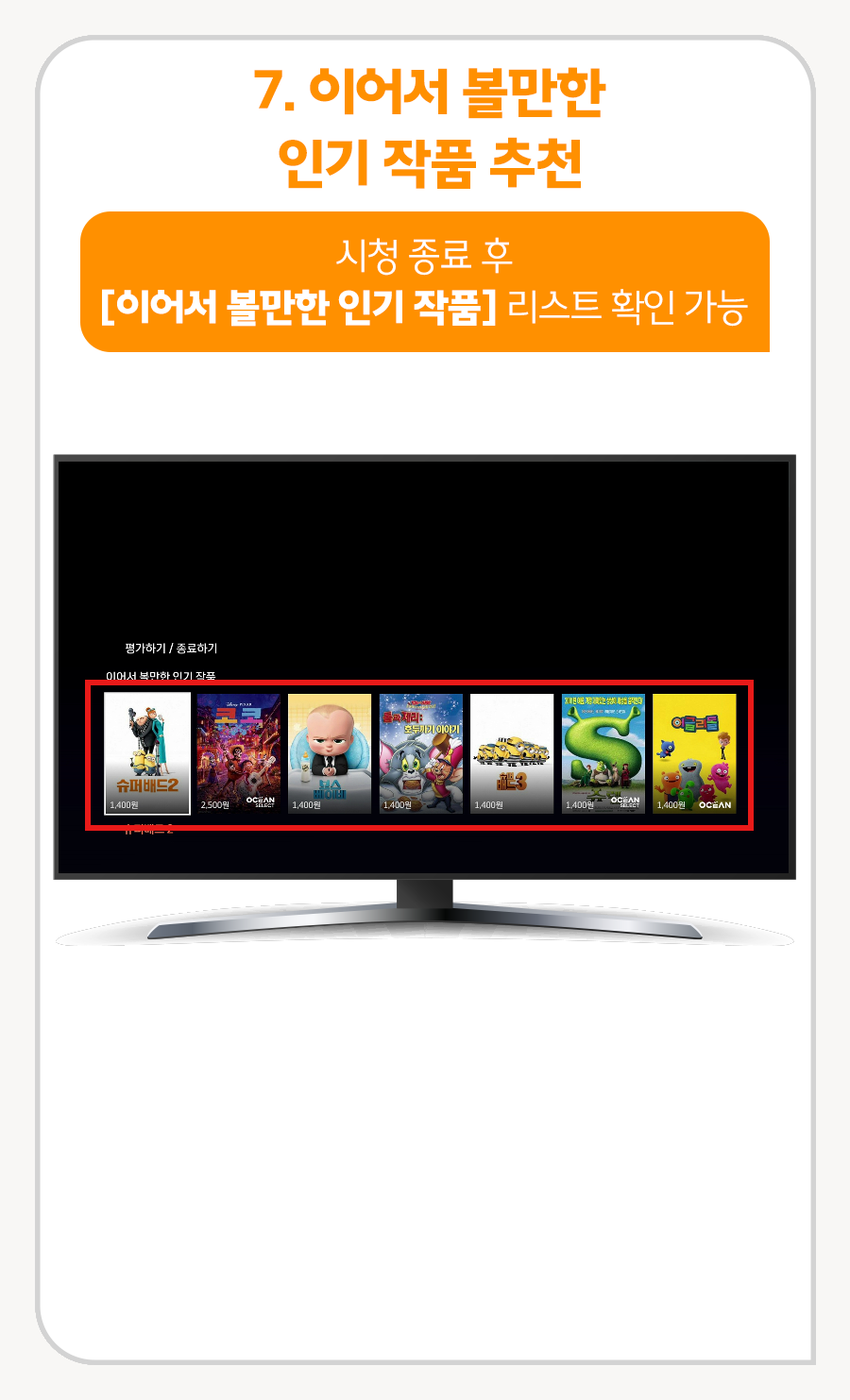 시청 종료 후 [이어서 볼만한 인기 작품] 리스트 확인 가능