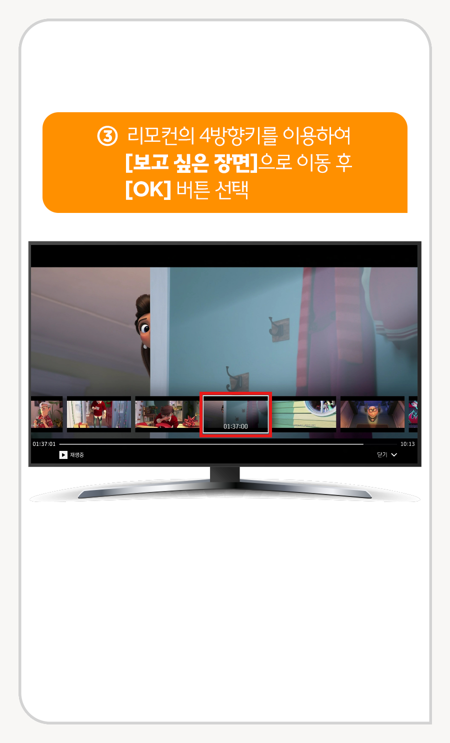 ③ 리모컨의 4방향키를 이용하여 [보고 싶은 장면]으로 이동 후 [OK] 버튼 선택