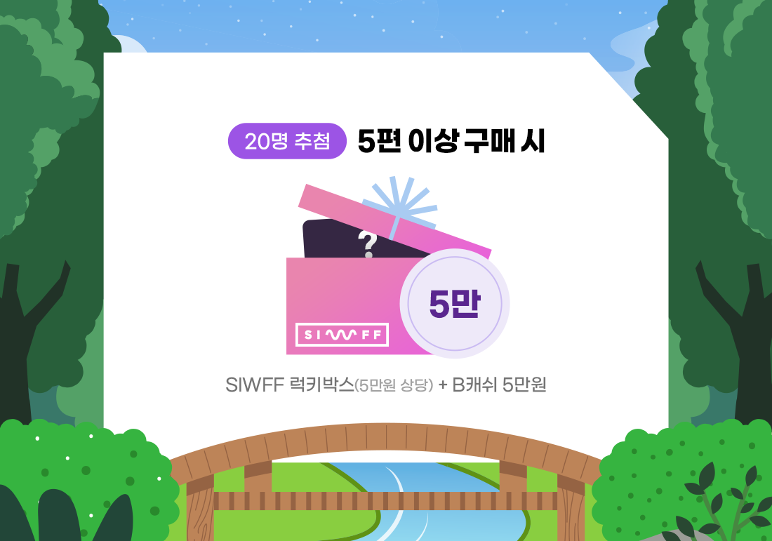 ③ 5건 이상 구매: 50,000캐쉬 + SIWFF 럭키박스(5만원 상당 영화제 제공 물품) 증정 (20명 추첨)