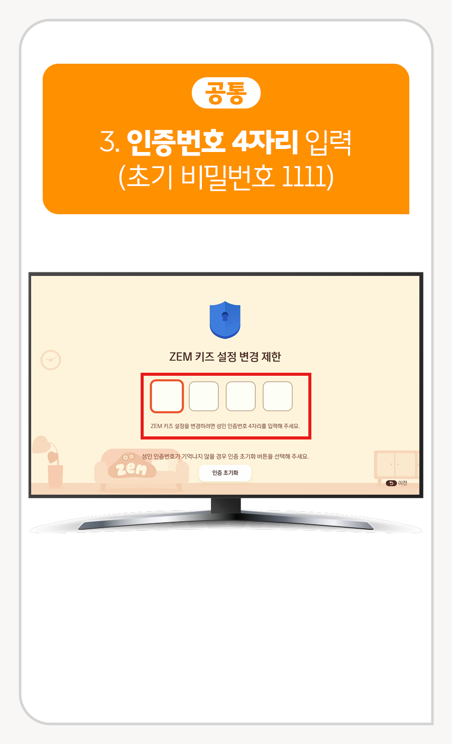 공통3) 인증번호 4자리 입력 (초기 비밀번호 1111)