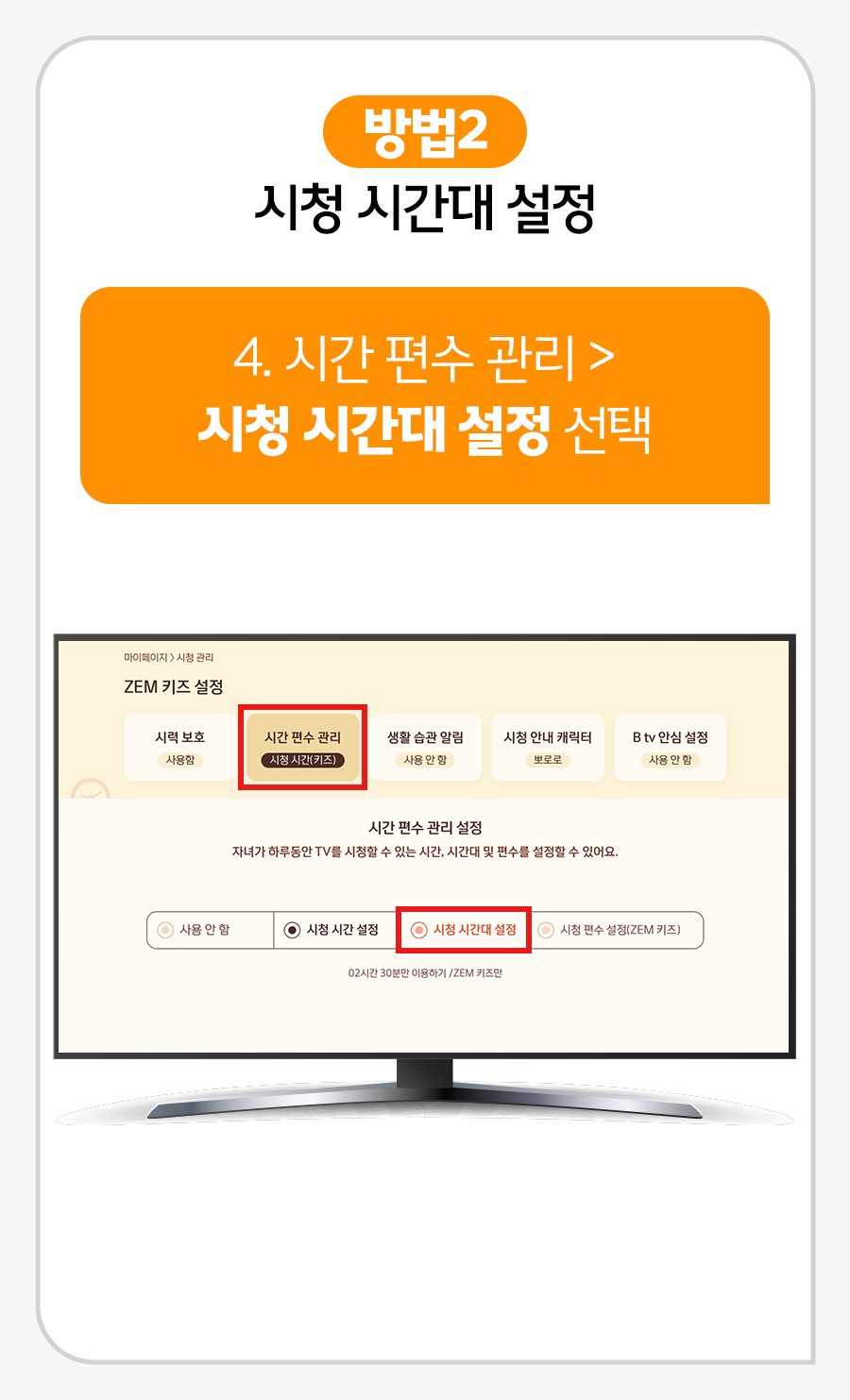 4. [시간 편수 관리] ▶ [시청 시간대 설정] 선택