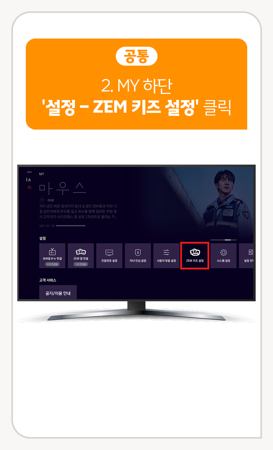 * B tv 홈 ▶ MY ▶ 설정 ▶ ZEM 설정▶ 시간 편수 관리
