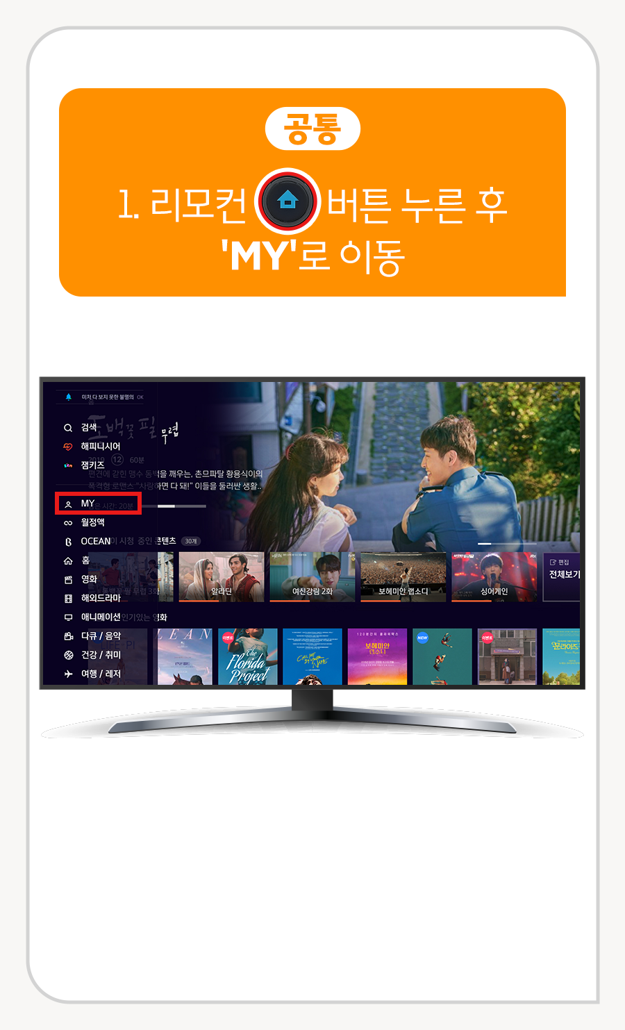 공통1) 리모컨 홈 버튼 누른 후 [MY]로 이동