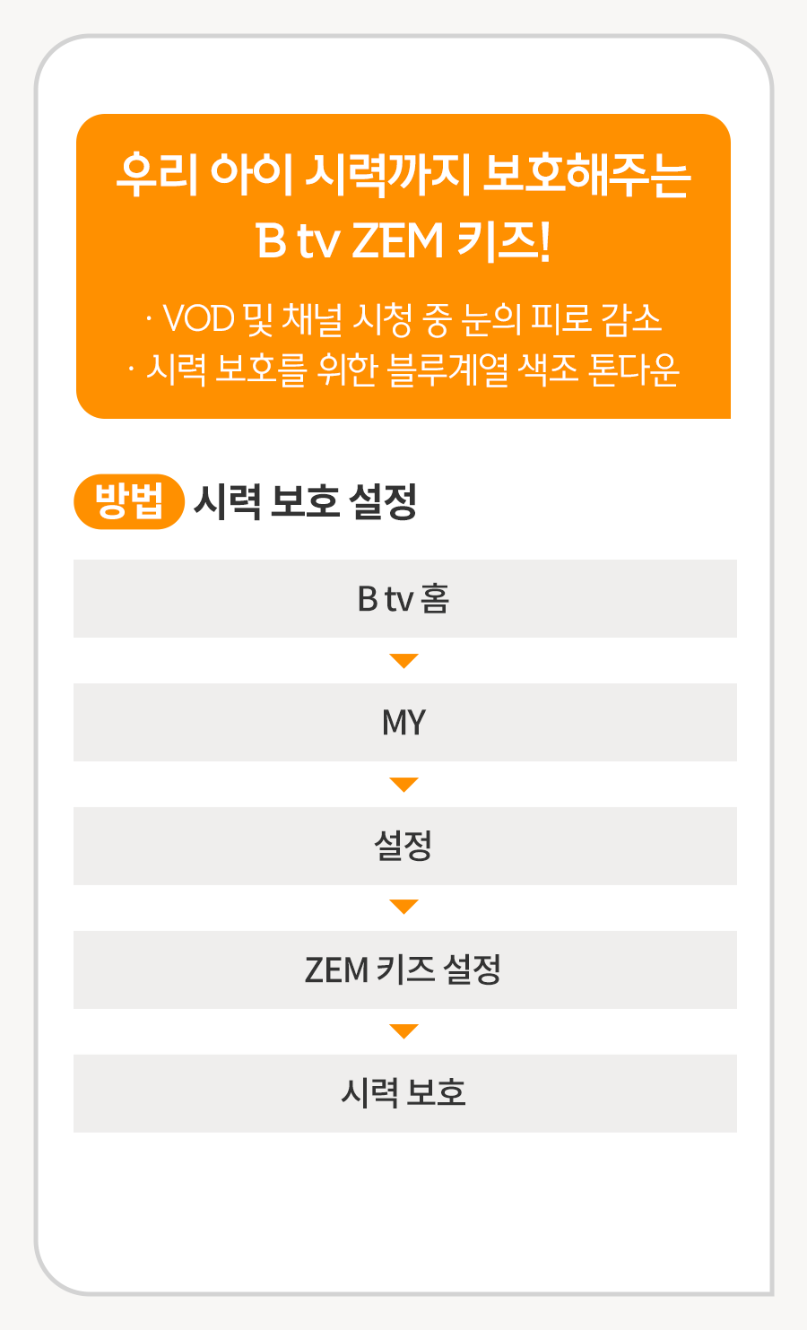 B tv 홈 ▶ MY ▶ 설정 ▶ ZEM 설정 ▶ 시력 보호