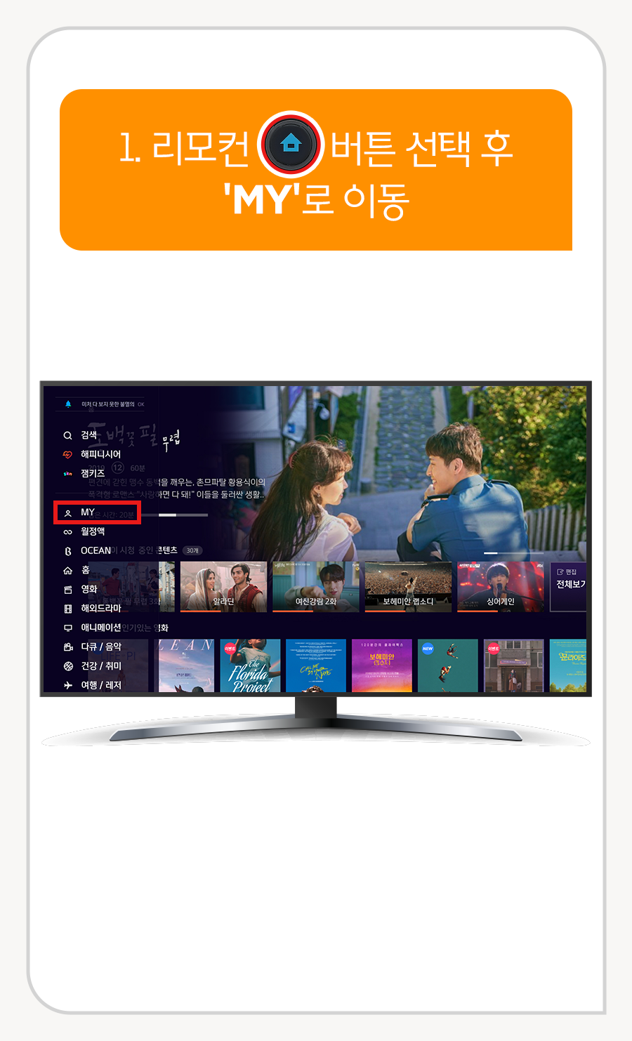 1. 리모컨 홈 버튼 누른 후 [MY]로 이동