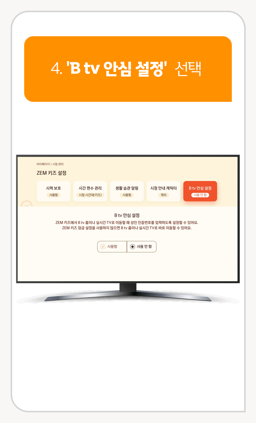4. [B tv 안심 설정] 선택