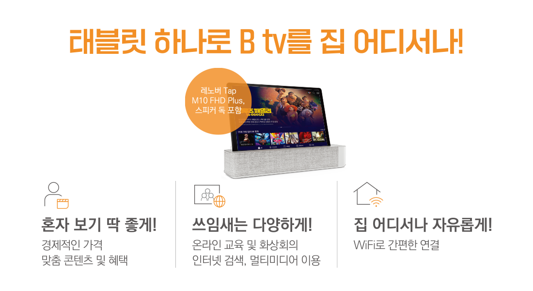 집에서는 나만의 B tv, 밖에서는 태블릿! 두 가지 방식으로 이용할 수 있는 태블릿 IPTV, B tv air를 추천해드려요.