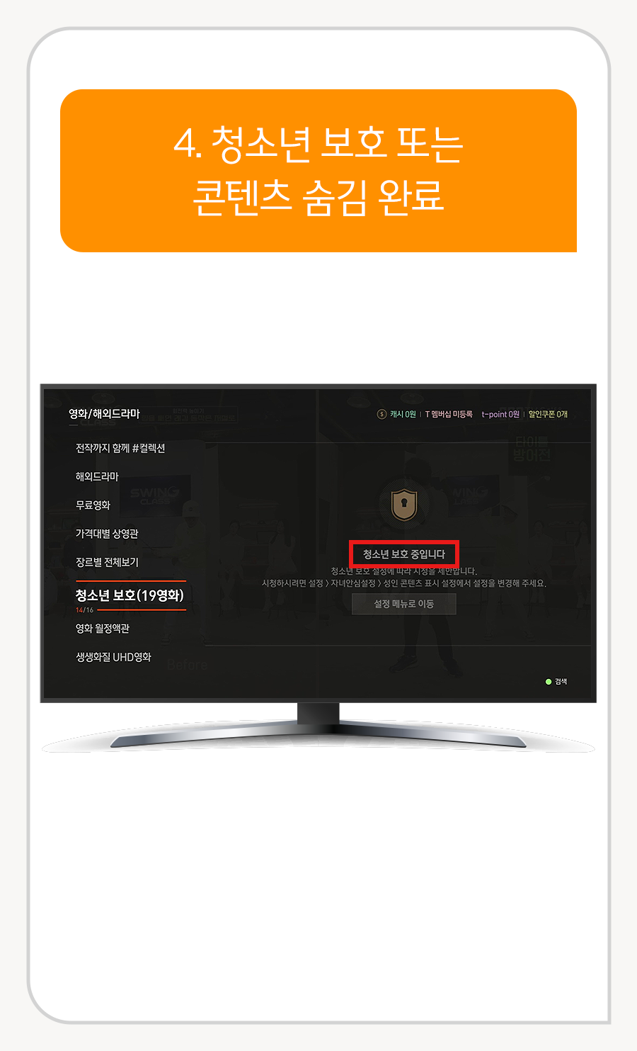 4. 청소년 보호 또는 콘텐츠 숨김 완료