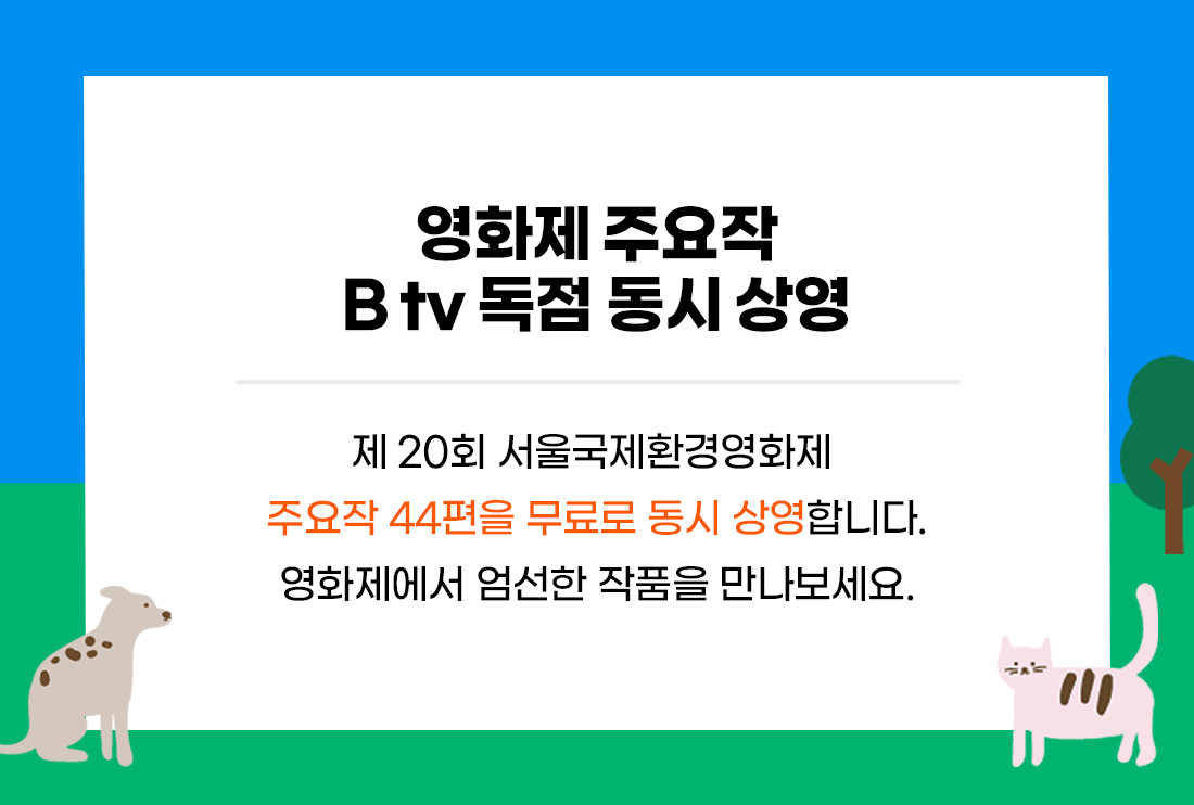 B tv에서 무료로 동시 상영되는 44편의 서울국제환경영화제 동시 상영작을 시청하시면