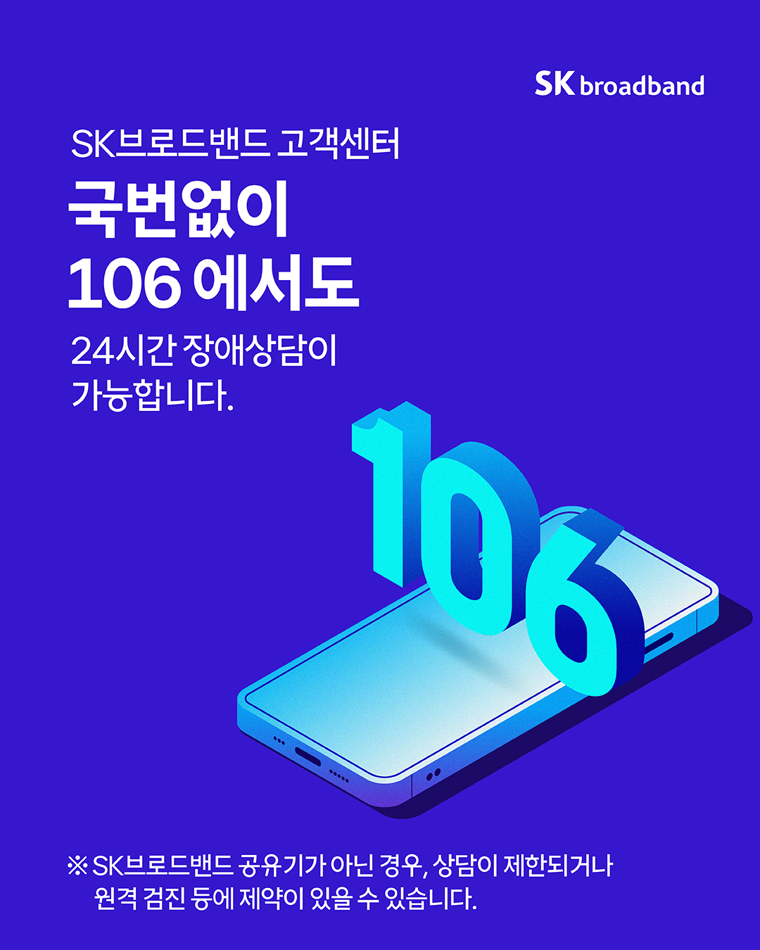 ‘국번없이 106’으로 전화 주시면 24시간 장애상담이 가능하니