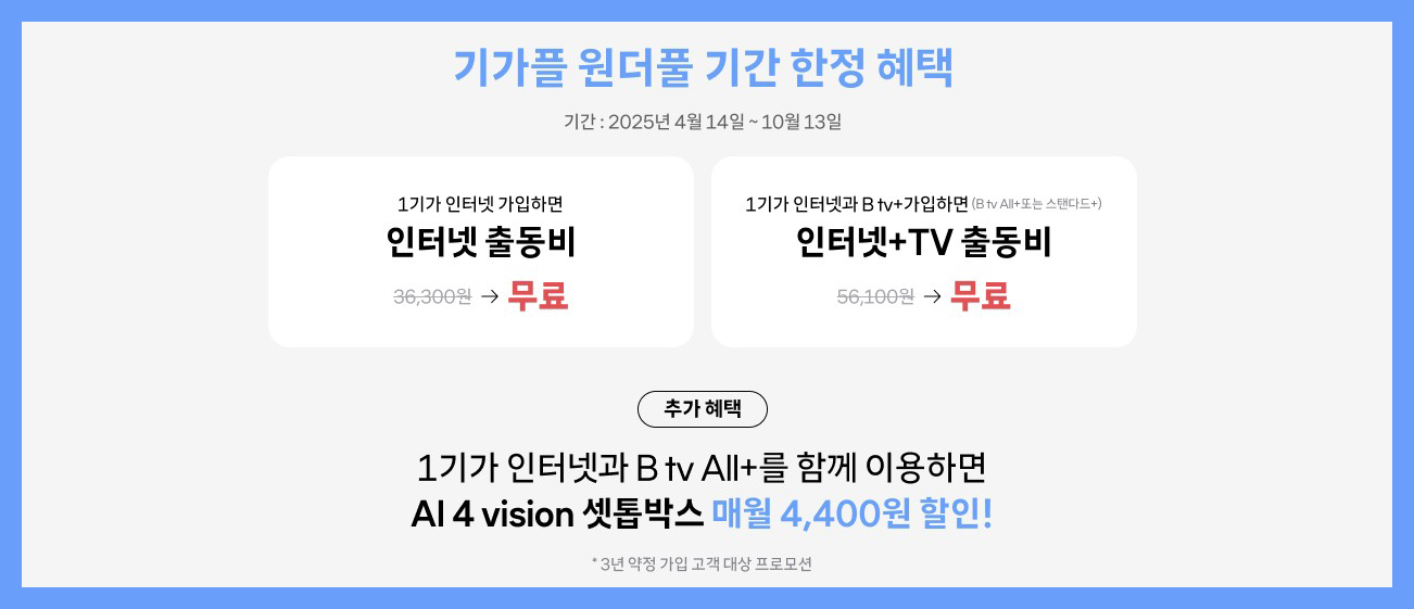 SK브로드밴드 최고의 상품들을 최대 혜택으로 가입할 수 있는 매력적인 프로모션 <기가플 원더풀> 프로모션!