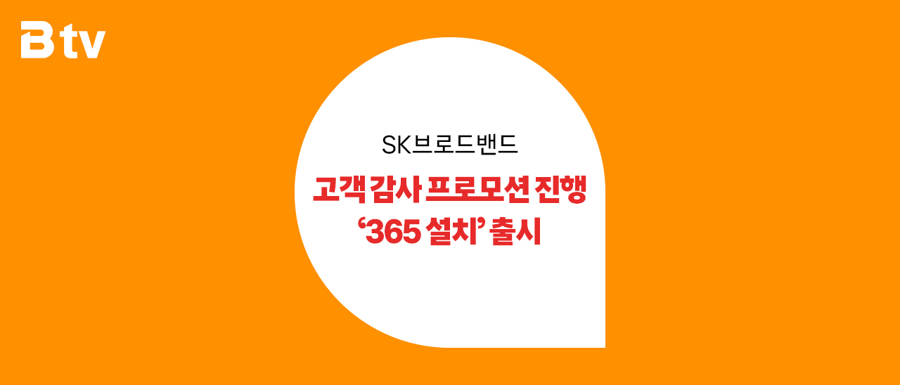 SK브로드밴드(대표이사 사장 박진효, www.skbroadband.com)는 신규 및 장기 고객 대상으로 고객 감사 프로모션을 진행하고, 평일 야간은 물론 주말과 공휴일까지 설치가 가능한 ‘365설치’ 서비스를 정식 오픈한다고 14일 밝혔다.