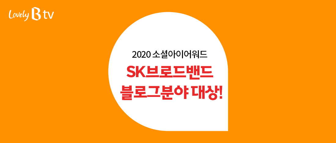 바로 SK브로드밴드가 2020소셜아이어워드 통신서비스 블로그분야에서 대상을 받았다는 소식입니다! (짝짝짝 👏)