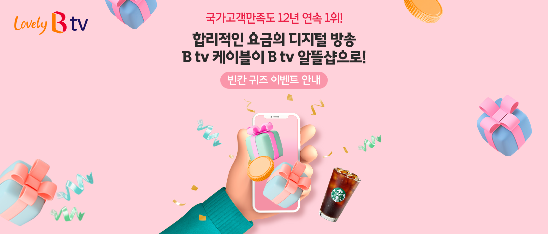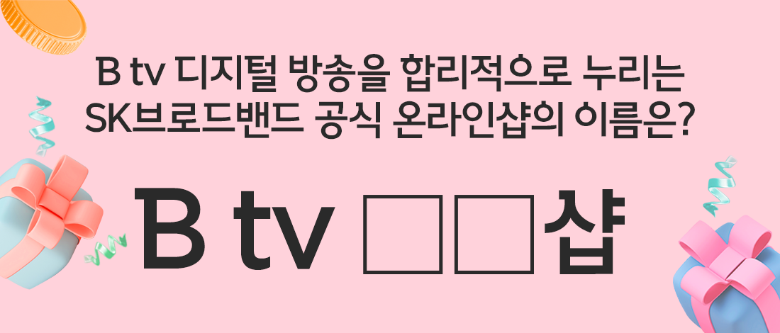 SK브로드밴드 공식 인스타그램과 페이스북에서는 <B tv □□샵> 빈칸 퀴즈 이벤트가 진행 중입니다.