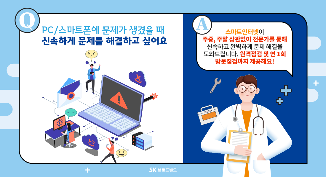 [SK브로드밴드 스마트인터넷 출시] PC/스마트폰 문제를 빠르게 해결해주는 맘 편한 인터넷 생활!