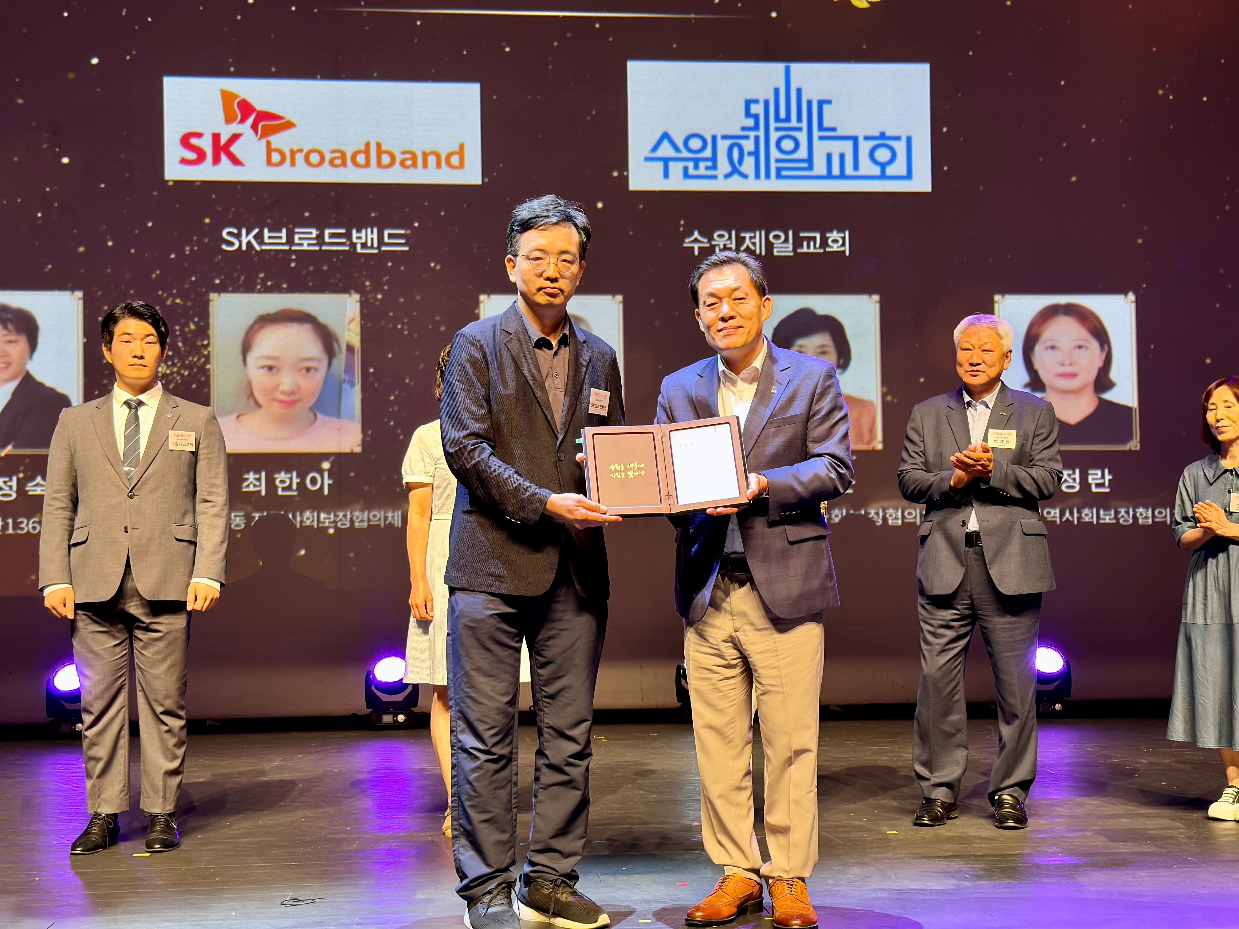 SK브로드밴드(대표이사 사장 : 박진효, www.skbroadband.com)는 수원특례시가 주최한 ‘제24회 사회복지의 날 기념식’에서 ‘사회복지 유공 표창(수원시장 표창)’을 수상했다고 7일 밝혔다.