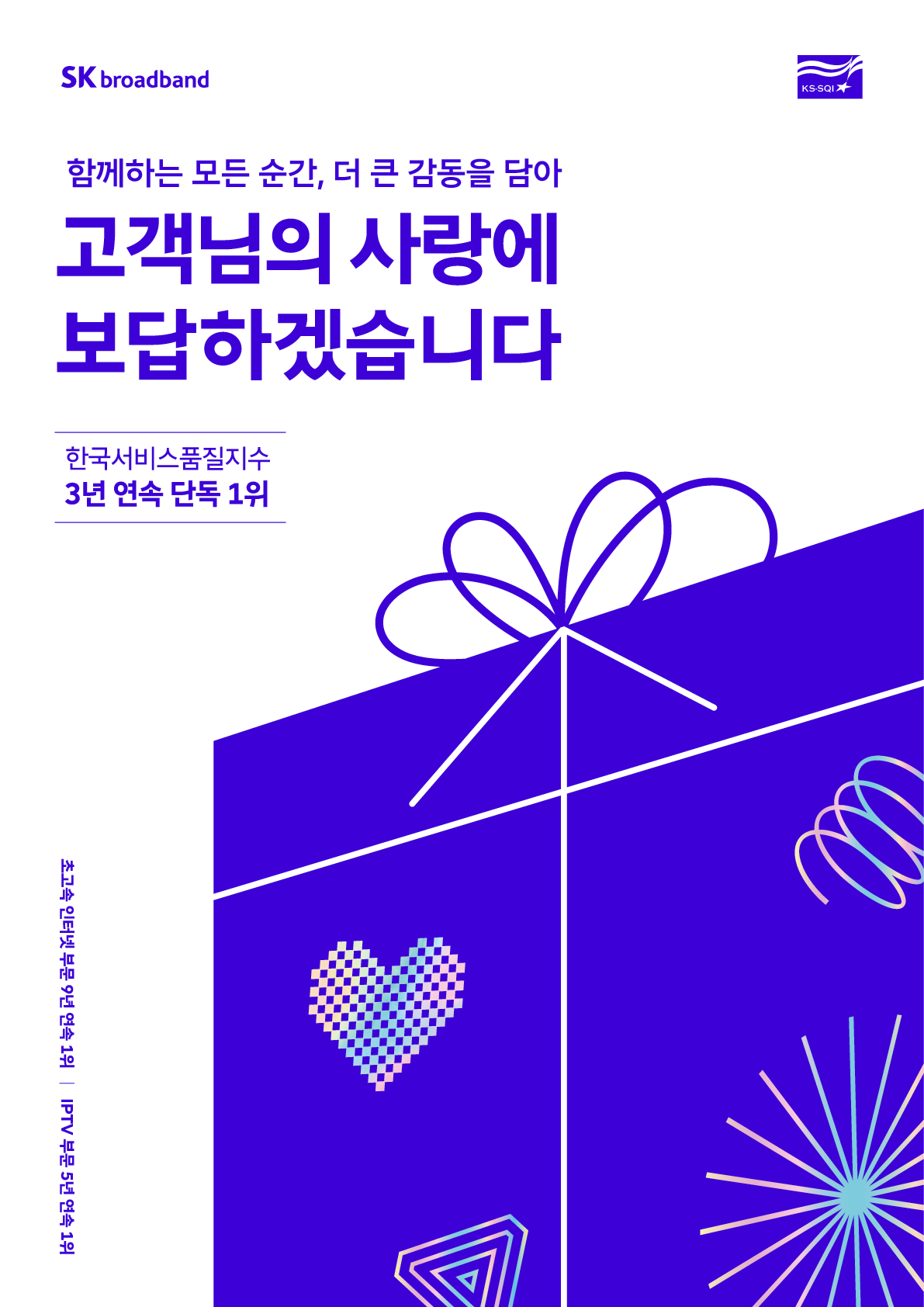 SK브로드밴드, 한국서비스품질지수(KS-SQI) 초고속인터넷 부문, IPTV 부문 3년 연속 단독 1위 달성!