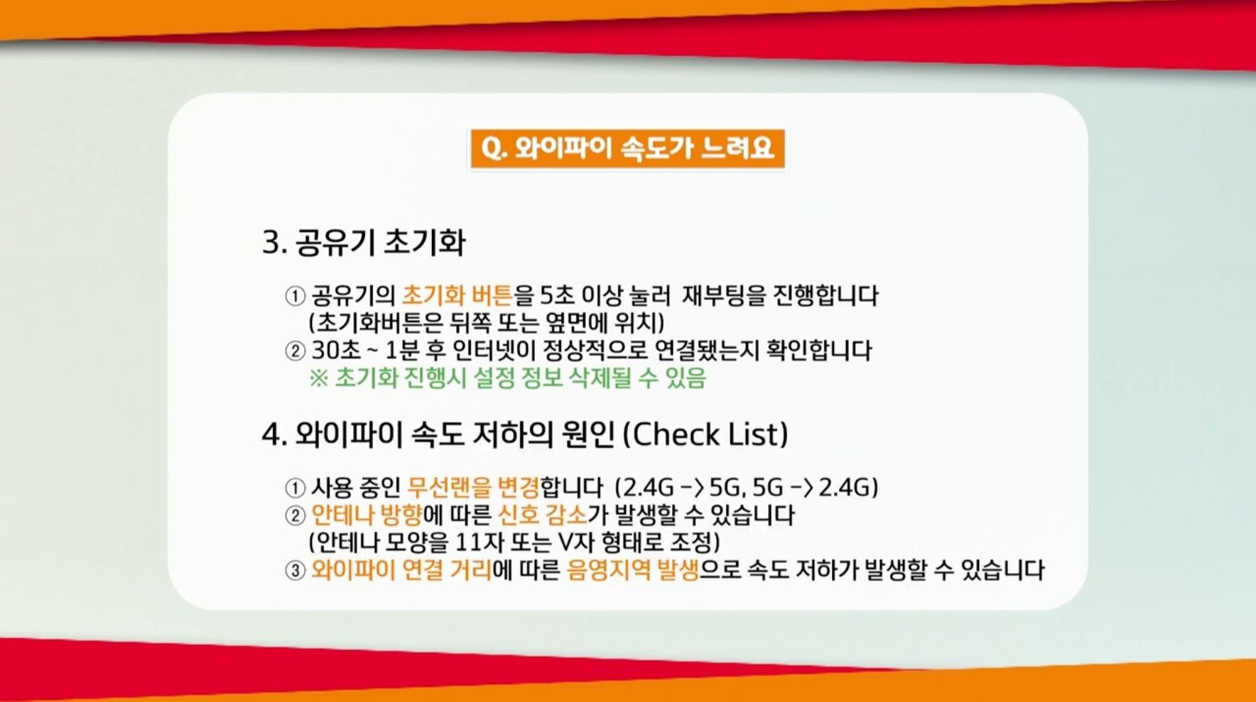 와이파이 속도 저하의 원인들을 설명 드리겠습니다.