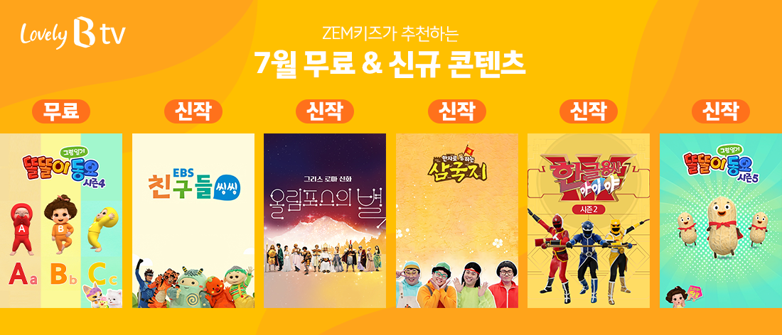 ZEM키즈 7월의 무료 & 신규 콘텐츠 안내 (똘똘이 그림일기 동요/EBS 친구들 씽씽/그리스 로마 신화 – 올림포스의 별/한글용사 아이야/한자로 통하는 삼국지)