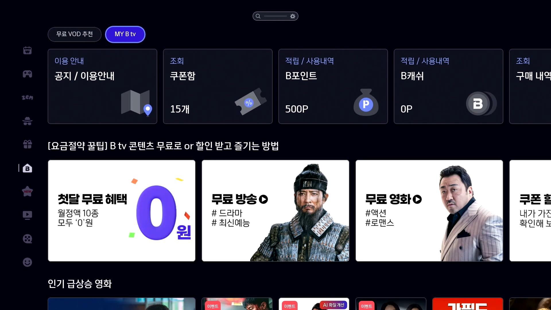 2. 리모컨 방향키에서 하향 방향 버튼을 이용하여 'MY B tv' 메뉴로 이동합니다.