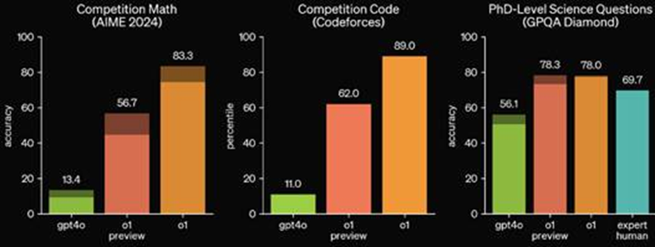 실제로 'o1'은 국제수학올림피아드 예선에서 이전 모델보다 훨씬 높은 정답률을 기록했다.