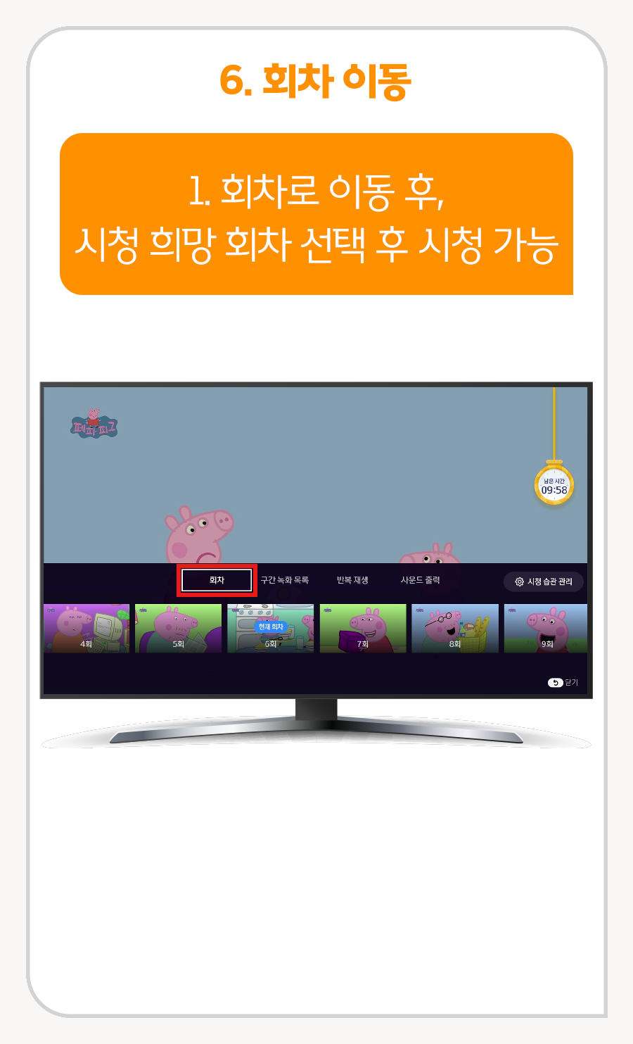 ① [회차]로 이동 후, 시청 희망 회차 선택 후 시청 가능